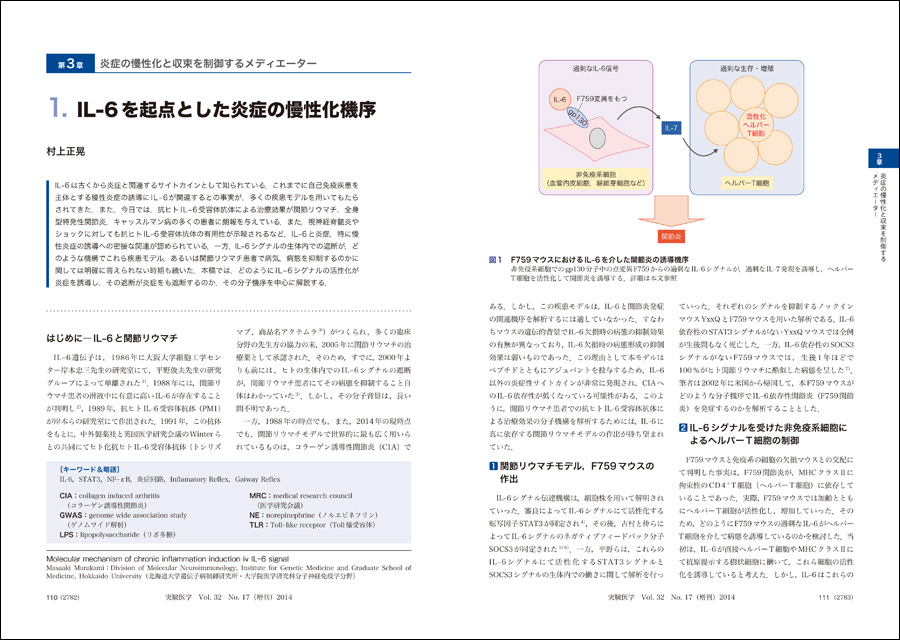 - 【本書名】実験医学増刊:炎症―全体像を知り慢性疾患を制御する〜炎症シグナル,免疫細胞のダイナミズムからがん・糖尿病などの発症機序と治療標的まで