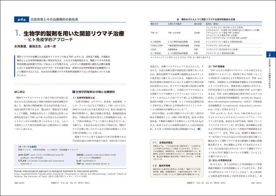 1. 生物学的製剤を用いた関節リウマチ治療―ヒト免疫学的アプローチ【永渕泰雄/藤尾圭志/山本一彦】