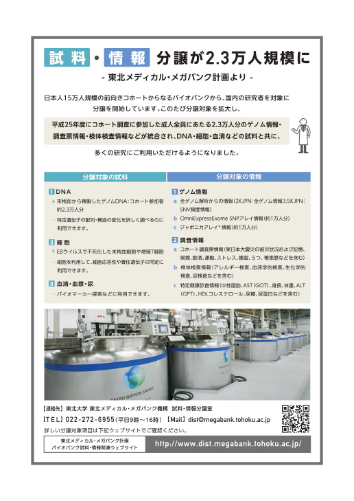 1. 東北メディカル・メガバンク計画 ―震災復興からのコホートと次世代型バイオバンク構築【清水厚志,布施昇男】