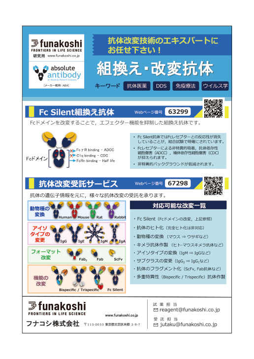 がん,自己免疫疾患のような,いわゆるアンメットと言われた疾患領域で顕著な成果を上げてきた抗体医薬は,昨今のコロナパンデミックで,カクテル抗体という形で,広く一般に知られるようになった.長く抗体医薬開発研究の一端にいる筆者自身も,最近では,抗体が,タンパク質であり免疫系でつくられる重要な分子である,という説明をすることはあっても,抗体って何ですか,とか,なぜその研究をされているのですか,という問いへの返答に窮することは全くなくなった.今や児童も知っているPCRと同じように,いよいよ,抗体医薬は誰もが知るようになった,ということであろう.…