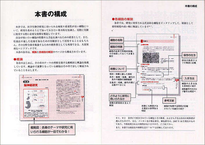 細胞生物学,分子生物学,疾患研究などの各研究分野で頻出する主要な細胞の特徴・由来から実際の培養に必要な具体的な情報までコンパクトに解説.便利なハンディサイズで,辞書・実験書・教科書と多目的に使える!