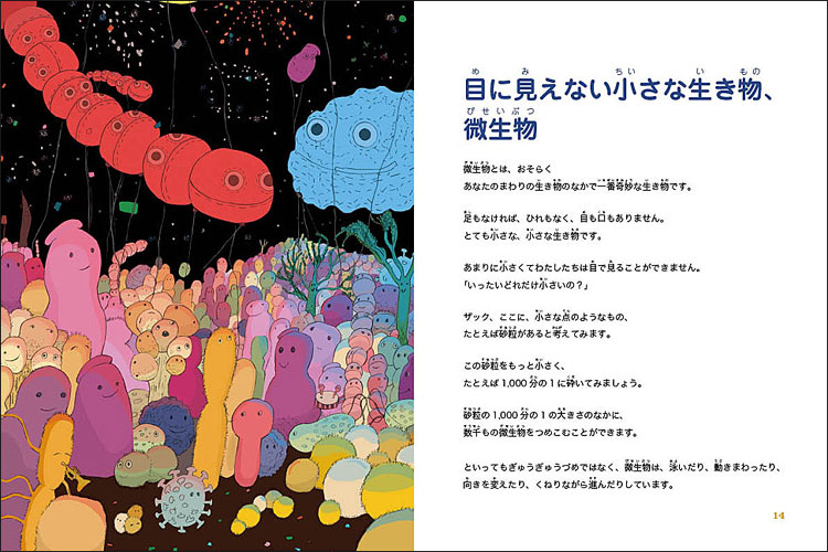ノーベル賞を親子で受賞した科学者一家から生まれた絵本!二十世紀を代表する科学者が、私たちの生活に役立ったり病気の原因になったりする目に見えない小さな生き物“微生物”について、やさしくお話しています!