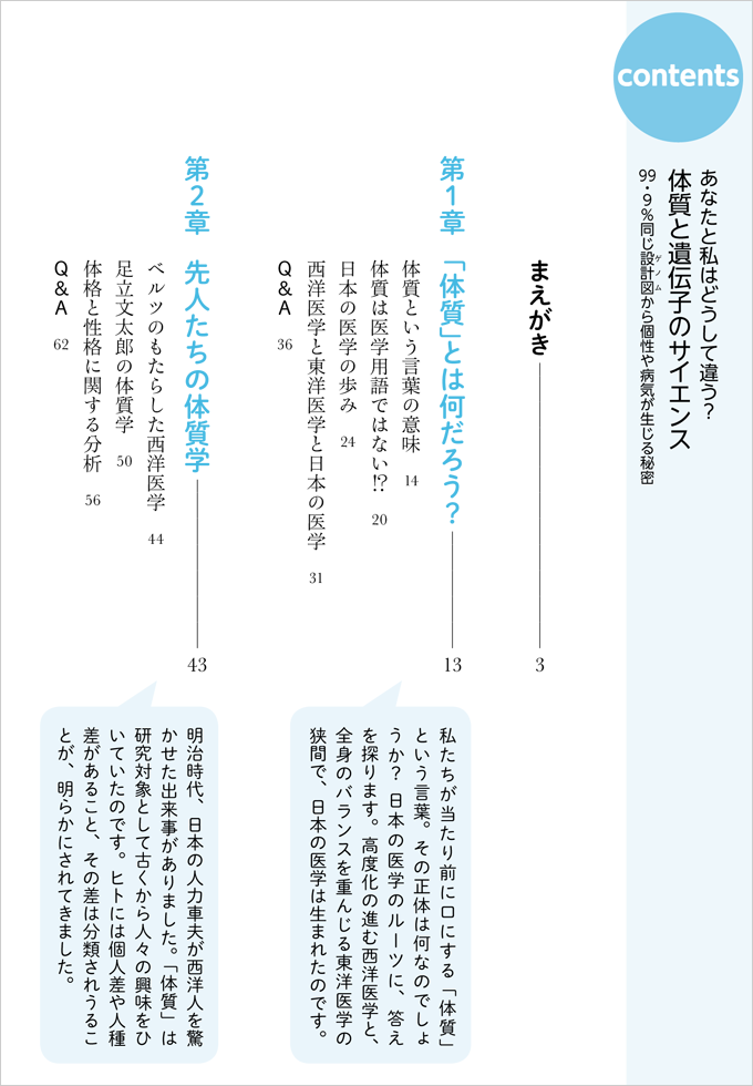 背が低い,太りやすい,癌になりやすい…など,「体質」をつくるものは何か?「体質」は換えられるか?SNPやエピゲノムなど,医療者・研究者が知っておきたいパーソナルゲノム時代の新常識が満載の科学読本です.