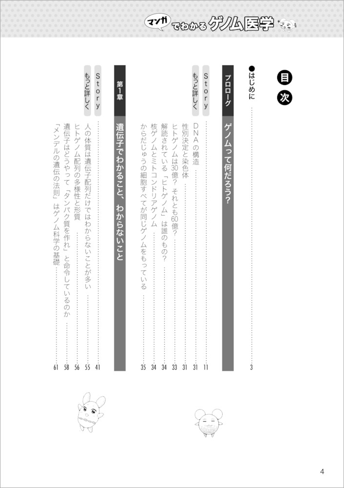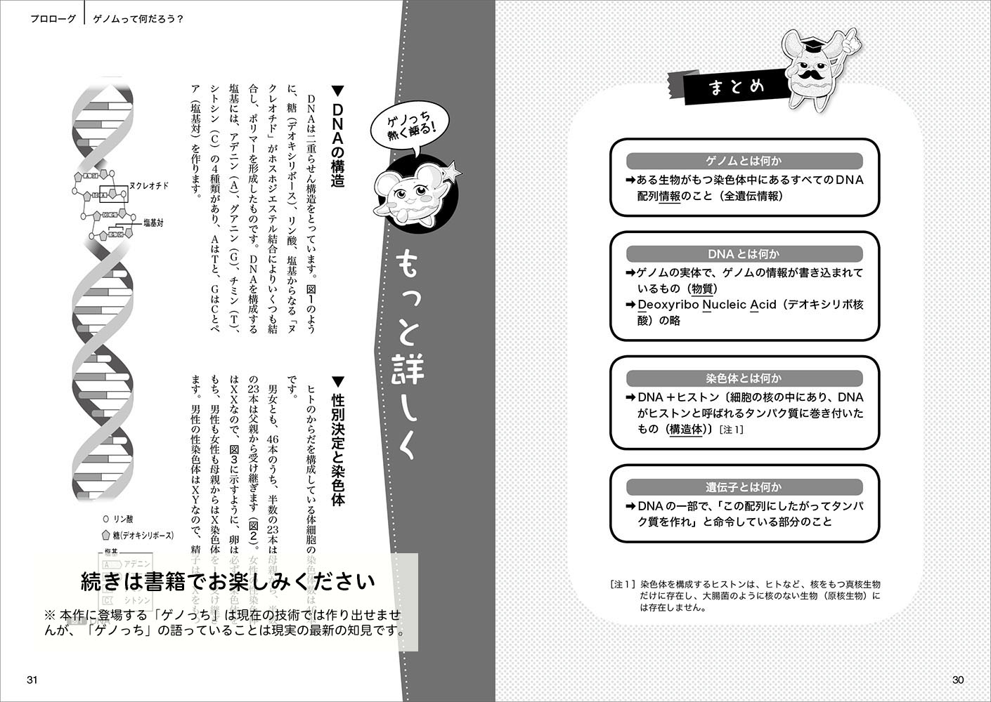 かわいいキャラクター「ゲノっち」と一緒に,生命の設計図=ゲノムと遺伝情報に基づいた最新医学について学ぼう! 非専門家でも読みこなせる「マンガ」パートと,研究者・医療者向けの「解説」パートの2部構成.