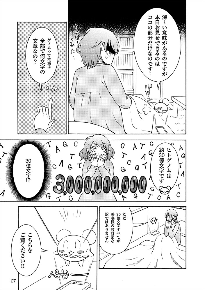 マンガ版の「日本の歴史」や「世界の歴史」で歴史の勉強を始めるように、素人も専門家も楽しみながらゲノムを勉強できる。多くの人がこの本を読んでサイエンスに親しみを持ってもらえればと思います。