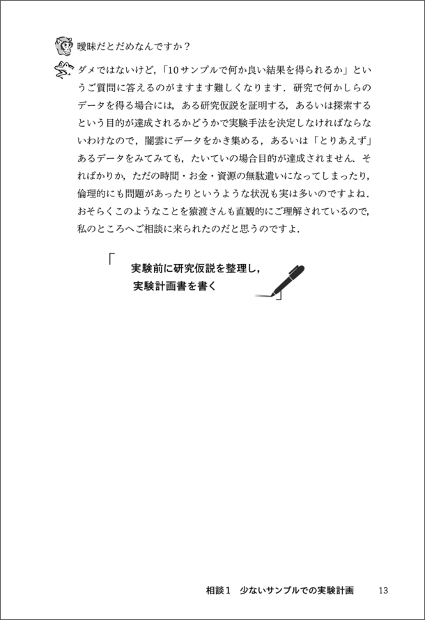 『相談1 実験をしたいのですが,10 サンプルしかありません.何か良い結果を示すことができるでしょうか.』より抜粋