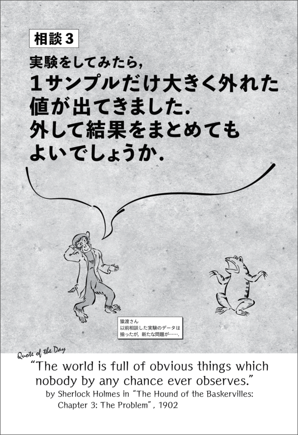 相談3 実験をしてみたら,1サンプルだけ大きく外れた値が出てきました.外して結果をまとめてもよいでしょうか.