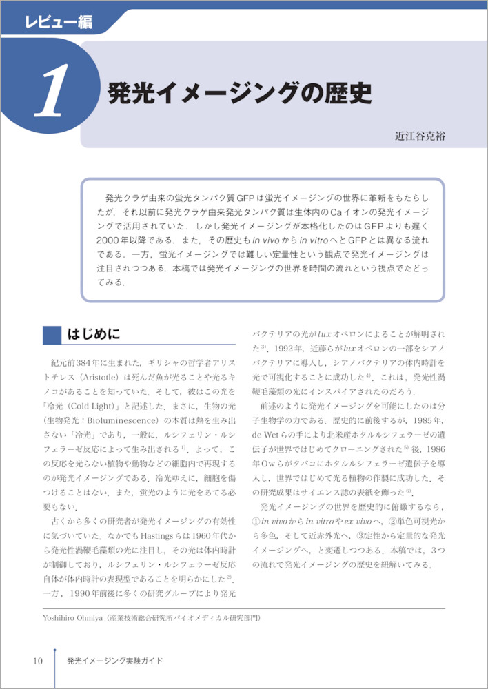新たな技術を導入する際にネックとなるのは,その初期コストである場合が多い.特に顕微鏡などイメージングに使用する機器は高価であるため,「試しにやってみたい」という理由だけで導入するにはハードルが高すぎる.発光を利用した細胞イメージングに興味をもつ研究者の多くは,すでに顕微鏡を用いた観察を行っている場合が多く,性能に差はあるものの,明視野および蛍光観察用につくられた顕微鏡を所有している場合が大半である.発光標識を用いたとしても顕微鏡による観察の基本的な原理は変わらないため,少しの工夫で発光観察を行うことが可能である.本稿では,手持ちの顕微鏡をどのようにセットアップすれば細胞の発光観察が可能になるか,実際の顕微鏡例をもとに紹介する.…