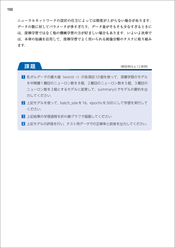 - 【本書名】Pythonで体感! 医療とAIはじめの一歩〜糖尿病・乳がん・残存歯のデータ、肺のX線画像を使って機械学習・深層学習を学ぶ体験型入門書