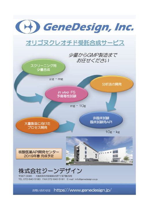 低分子医薬や抗体医薬による創薬シーズの枯渇が危惧されるなか,オリゴ核酸を基本骨格とする「核酸医薬」が新しい創薬モダリティとして注目を集めている.本特集では,概論において核酸医薬の全体像を概説した後,代表的な核酸医薬であるアンチセンス,siRNA,アプタマー,CpGオリゴの開発状況を紹介する.さらに,核酸医薬開発と密接に関連する基盤技術として,DDS(体内動態),RNAデータベース,RNA検索技術をとり上げる.本企画により核酸医薬の包括的な理解が進み,関連する研究領域との有機的な相互作用が生まれることを期待したい.