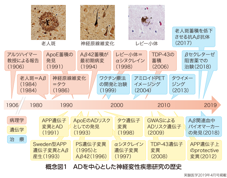 神経の変性とともに異常構造物の出現という病理学的な特徴を示す神経変性疾患は,その生化学的な解析と遺伝学の解析が相まって,原因分子が明らかとなり,そこからバイオマーカー開発,そして大規模観察研究を経て,異常タンパク質の蓄積病態が長期間にわたって継続することで生じる,慢性代謝疾患であることが明確となった.ADにおいて抗Aβ医薬品の開発が難航している現状で,Aβが治療標的分子として正しくないのではないか,という議論も多くなされている.しかし遺伝学的な解析結果は明確にAβがADの発症にかかわることを示している.一方,タウの神経変性における重要性もまた,FTDの遺伝学解析から明白である.現代の生物学を研究するうえで,遺伝学を否定することはできない.つまり,ADにおいてはAβとタウ,どちらが正しいのではなく,ともに病態に深くかかわっている因子であり,合わせて研究していくことが求められているのである.