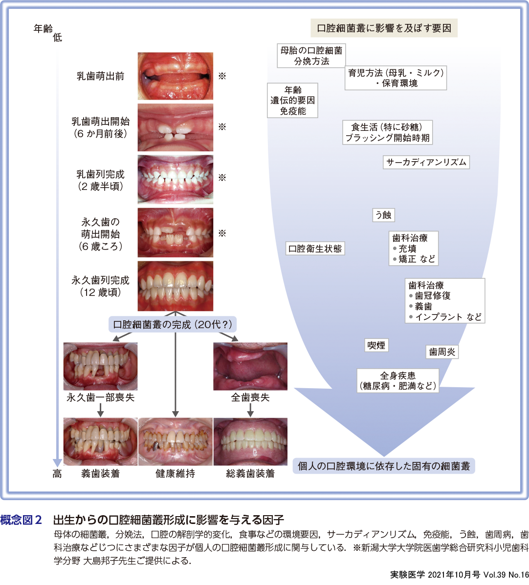 乳児期の口腔細菌叢は比較的シンプルであるが,生涯を通じて新たな細菌種を獲得することで複雑さを増していくことになる.