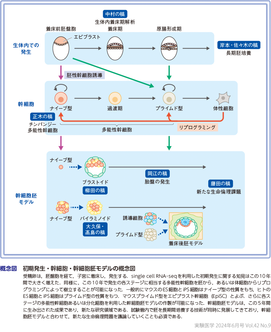統合胚モデルは,胚そのものを模倣する.現在胚モデルは発生を進めることができず(中村の稿,藤田の稿参照),生命ではない.しかしながら,モデルがより洗練されていく可能性も考えると倫理的な問題や規制を考えていく必要がある(藤田の稿参照).同時に幹細胞胚モデルは,ヒト発生を理解するツールとしてのみではなく,不妊治療,初期発生異常の研究,再生医療等への応用が期待されており,これらから得られるメリットは大きく,多能性幹細胞を利用しヒト初期発生を解析するアプローチは今後も爆発的に発展すると思われる.日本においても,若い研究者が加わり世界に一石を投じるような研究ができればと願う.