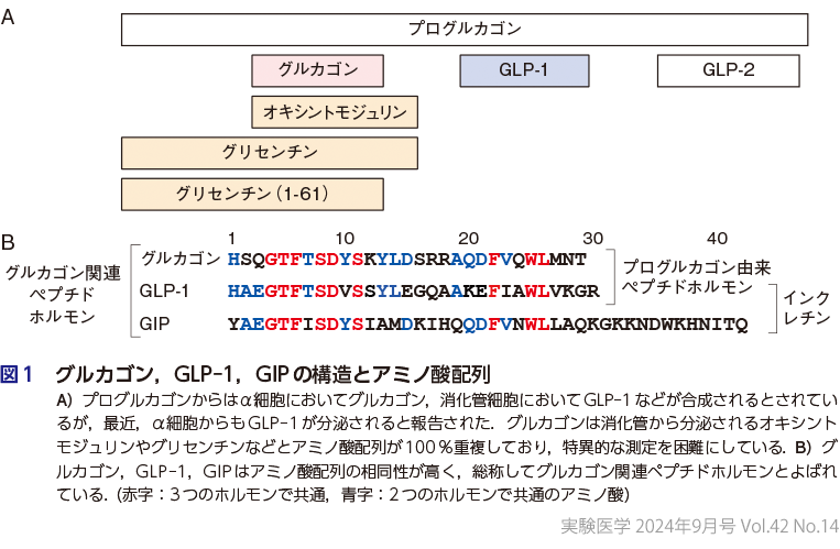 グルカゴン,GLP-1,GIPはアミノ酸配列や作用に類似点が多いペプチドホルモンであるが,互いに反対の作用を示す場合もある.また,もとになる遺伝子,分泌する細胞,血中半減期や血中濃度などには違いがある一方,それぞれの受容体はGタンパク質共役受容体(G protein-coupled receptor:GPCR)であり,細胞内シグナルは共通する場合が多い.最近,これらのホルモンの受容体作動薬,特に2つ,あるいは3つの受容体に同時に作用するdual agonistやtriagonistが開発され,臨床試験が進行中である.今後の糖尿病,肥満症,脂肪肝,慢性腎臓病など多様な疾患に対する主要薬剤となる可能性がある.