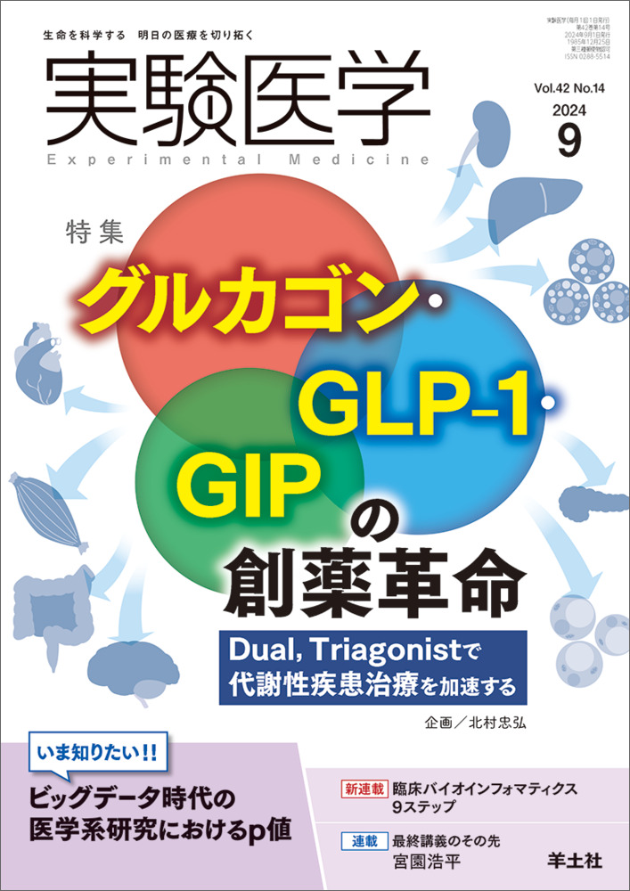 糖尿病や肥満症を皮切りに,様々な代謝性疾患への有効性がみえてきたグルカゴン,GLP-1,GIP.それぞれの特性や作用機序,さらには共作動薬という手段により急速に進みだした創薬研究の現状について大特集!
