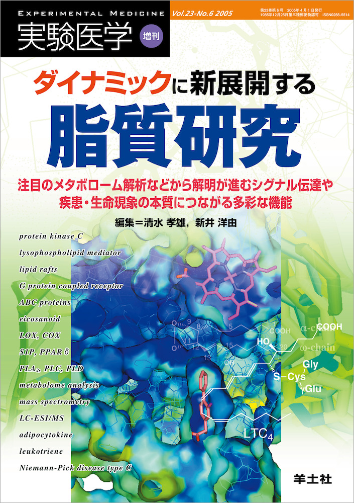 • 【本書名】実験医学増刊:ダイナミックに新展開する脂質研究〜注目のメタボローム解析などから解明が進むシグナル伝達や疾患・生命現象の本質につながる多彩な機能