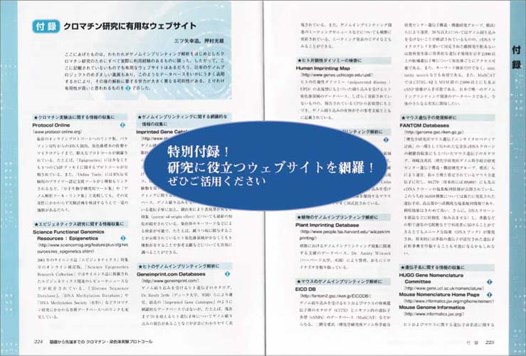 - 【本書名】実験医学別冊 注目のバイオ実験シリーズ:基礎から先端までの クロマチン・染色体実験プロトコール〜注目のゲノム動態,エピジェネティクスの解析法と染色体改変,イメージング技術のすべて