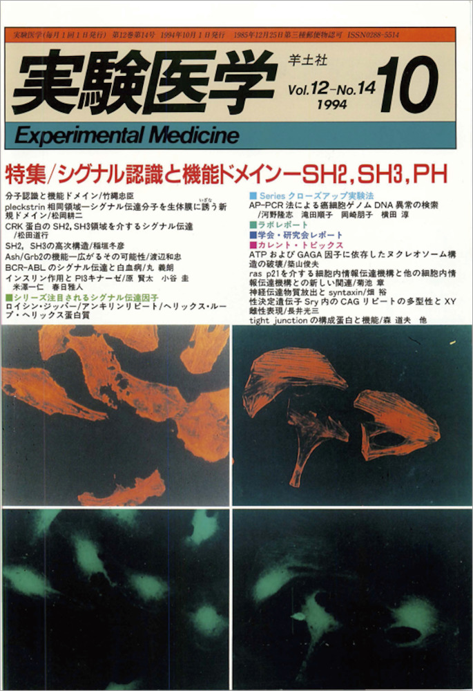 細胞内シグナル伝達機構の研究解明は,まるで隠れていた通訳を表舞台に立たせてその功績をたたえているように思えます.今月は東京大学医科学研究所の竹縄忠臣先生にご企画いただいて多くの通訳の中からSH2,SH3,PHにスポットを当て,特集いたしました.