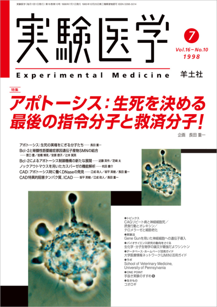 アポトーシス(細胞死)は生体の恒常性を維持する上で必須の生命現象,つまり“生きるための死”です.本特集は,このアポトーシスのシグナル伝達経路における最終段階,つまりDNAを断片化し,細胞に最後のとどめを刺す分子CADと,それを制御するICAD を世界に先駆けて発見されました大阪大学医学部の長田重一先生にご企画いただき実現いたしました.