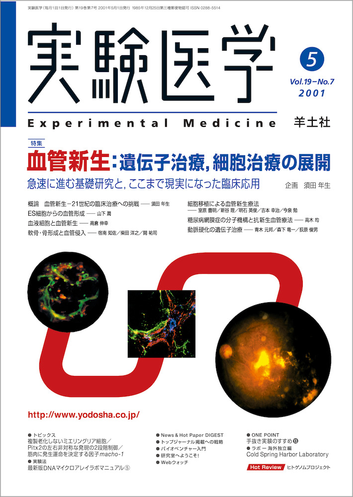 - 【本書名】実験医学:血管新生:遺伝子治療、 細胞治療の展開−急速に進む基礎研究と,ここまで現実になった臨床応用