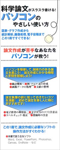 パソコンを駆使して,論文作成にかかる時間と手間を短縮しよう!説得力のある論文に欠かせない,図表やグラフの作成法から,文献の整理法,校正・投稿のコツまで,論文執筆の前に知っておきたいコツを満載!パソコン初心者や,初めて論文を書く学生の方に特におすすめです!Windows,Macintoshの両方に対応.