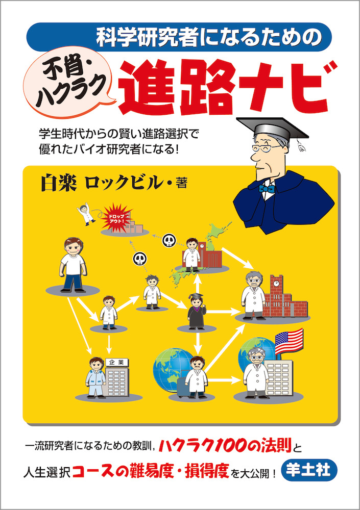 - 【本書名】科学研究者になるための 不肖・ハクラク 進路ナビ〜学生時代からの賢い進路選択で優れたバイオ研究者になる!