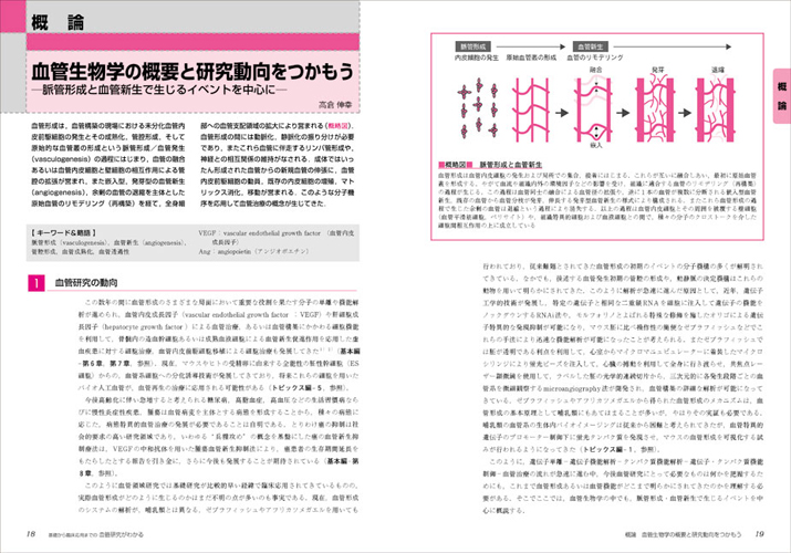 血管形成のメカニズムと注目の「血管治療」をコンパクトにわかりやすく解説!血管は,その形成の分子メカニズムが近年次々に明らかになるとともに,さまざまな疾患に関与することが知られており,癌に対する「抗腫瘍血管新生療法」や動脈硬化などに対する「血管新生療法」といった血管治療の進展が注目されています.本書では,基本編で血管構成細胞の分化や血管網構築のメカニズムとそれに基づく血管治療研究を丁寧に解説し,トピックス編で最近の話題の研究を紹介します.