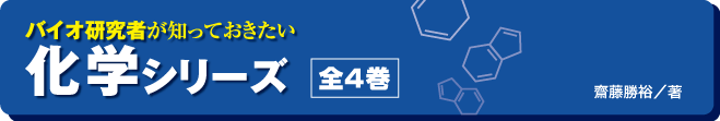 バイオに化学が必要だと感じるが,なかなか勉強する取っ掛かりがない・・・そんな方におすすめなのが,この羊土社の化学シリーズ.バイオ研究者が知っておきたい知識に絞った内容だから,化学の基礎が短時間で効果的に身につきます.どの巻から読み始めても理解できる内容構成になっていますので,興味あるテーマからどうぞご覧ください.