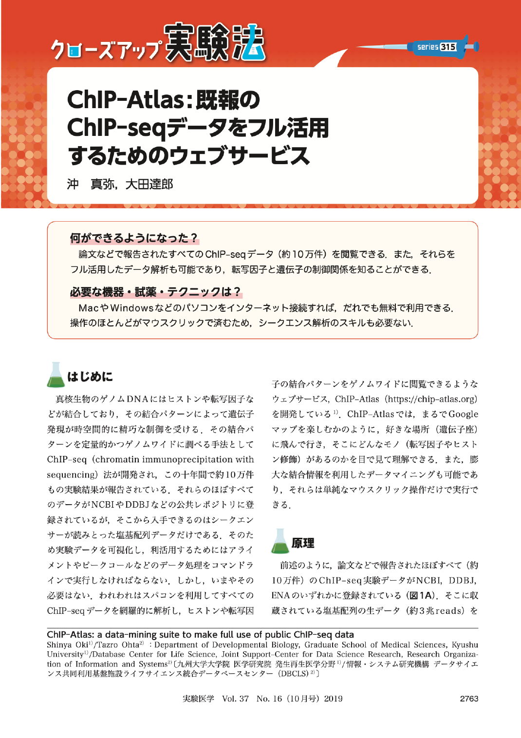 ChIP-Atlas:既報のChIP-seqデータをフル活用するためのウェブサービス