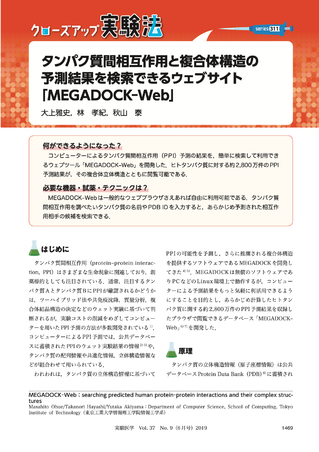 タンパク質間相互作用と複合体構造の予測結果を検索できるウェブサイト「MEGADOCK-Web」