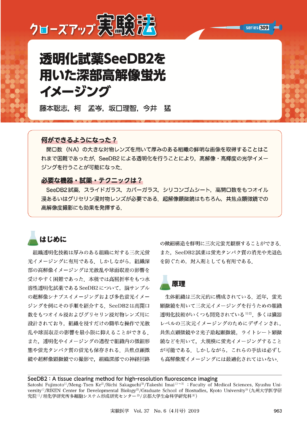 透明化試薬SeeDB2を用いた深部高解像蛍光イメージング