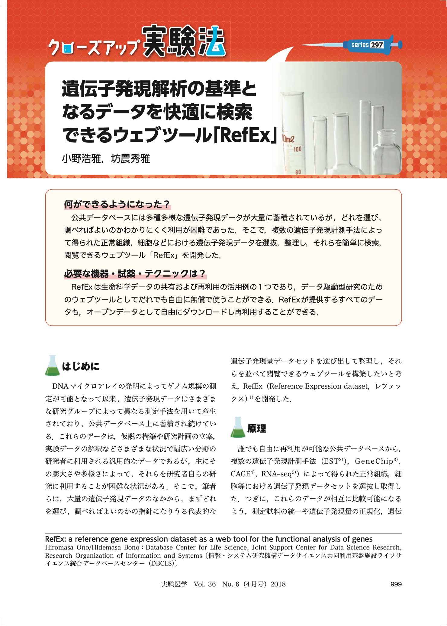 遺伝子発現解析の基準となるデータを快適に検索できるウェブツール「RefEx」