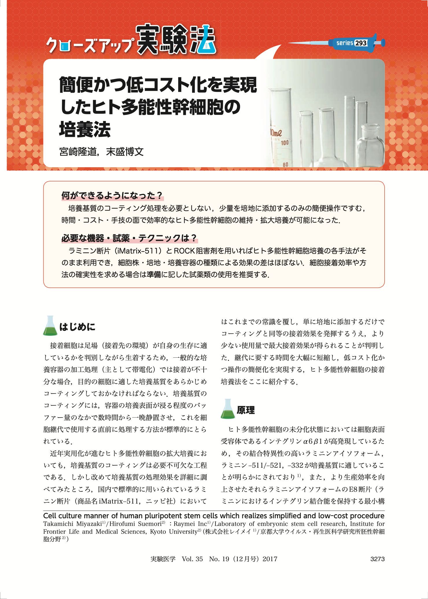 簡便かつ低コスト化を実現したヒト多能性幹細胞の培養法
