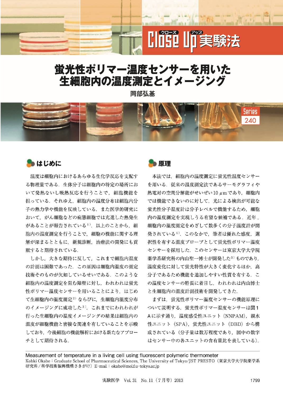 蛍光性ポリマー温度センサーを用いた生細胞内の温度測定とイメージング