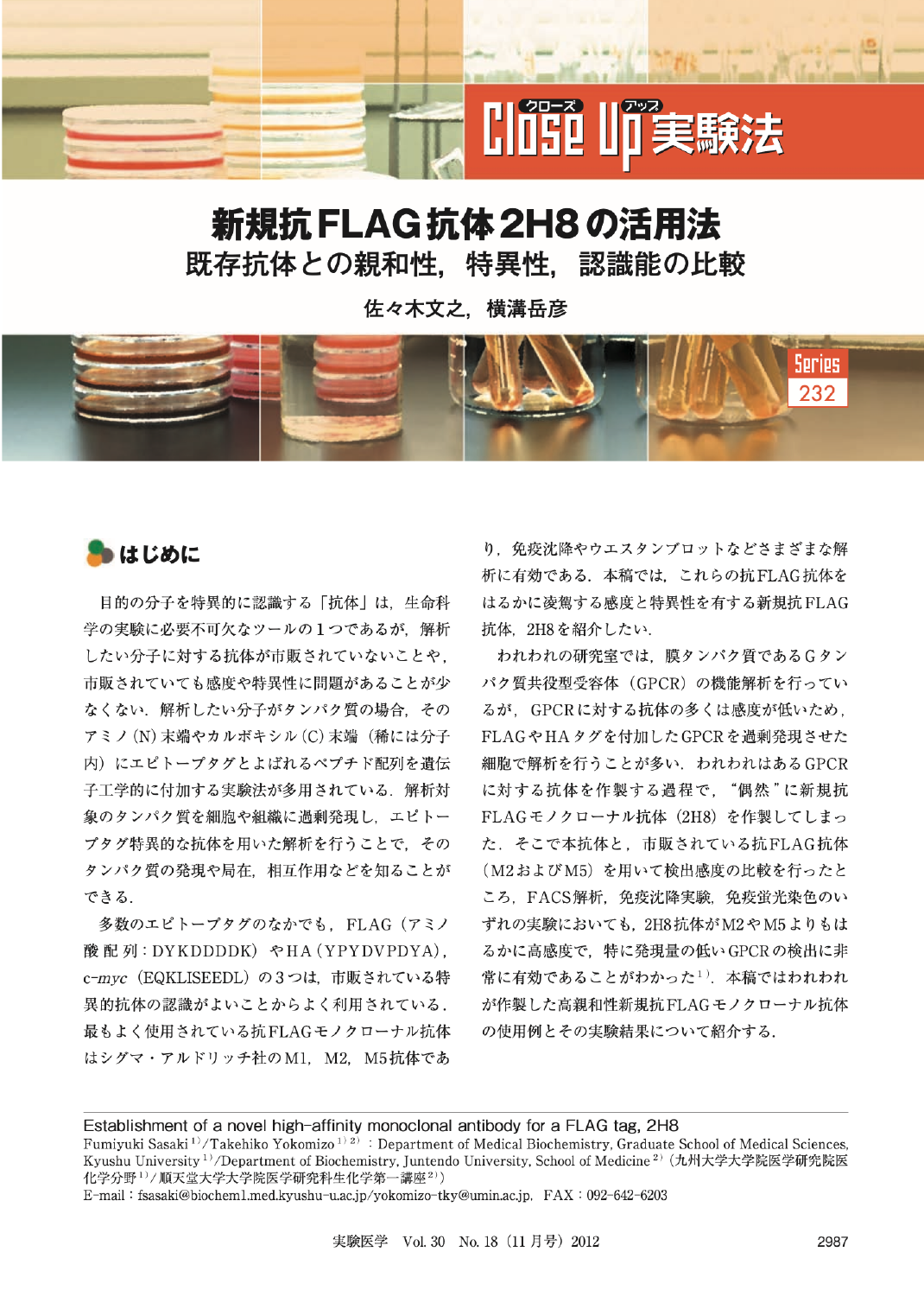 新規抗FLAG抗体2H8の活用法―既存抗体との親和性,特異性,認識能の比較