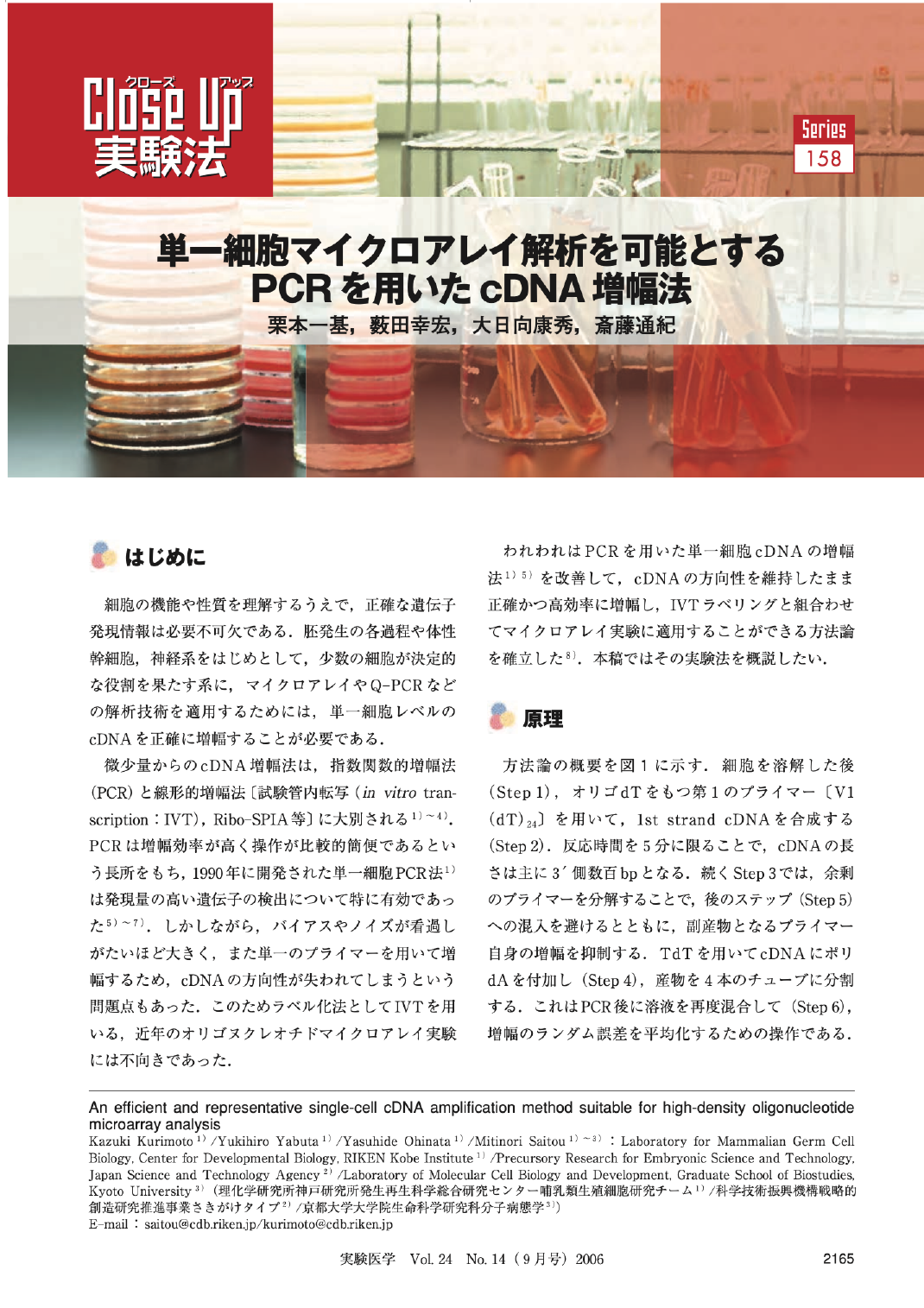 単一細胞マイクロアレイ解析を可能とするPCRを用いたcDNA増幅法
