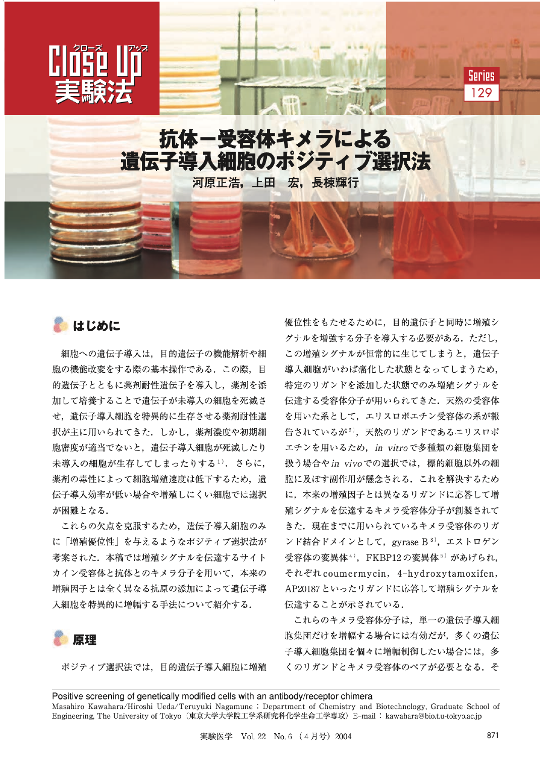 抗体〜受容体キメラによる遺伝子導入細胞のポジティブ選択法