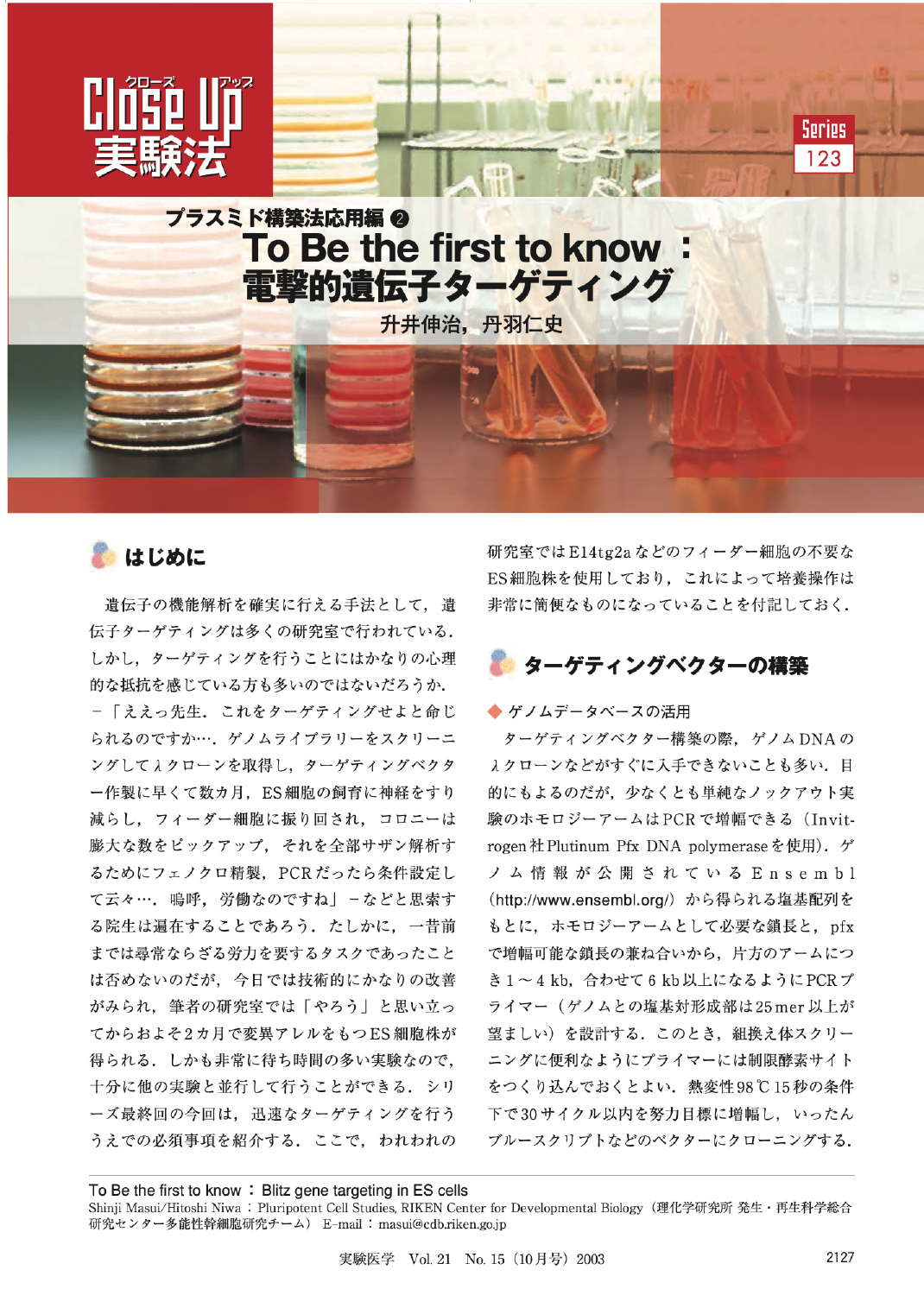 プラスミド構築法応用編2 To Be the first to know:電撃的遺伝子ターゲティング