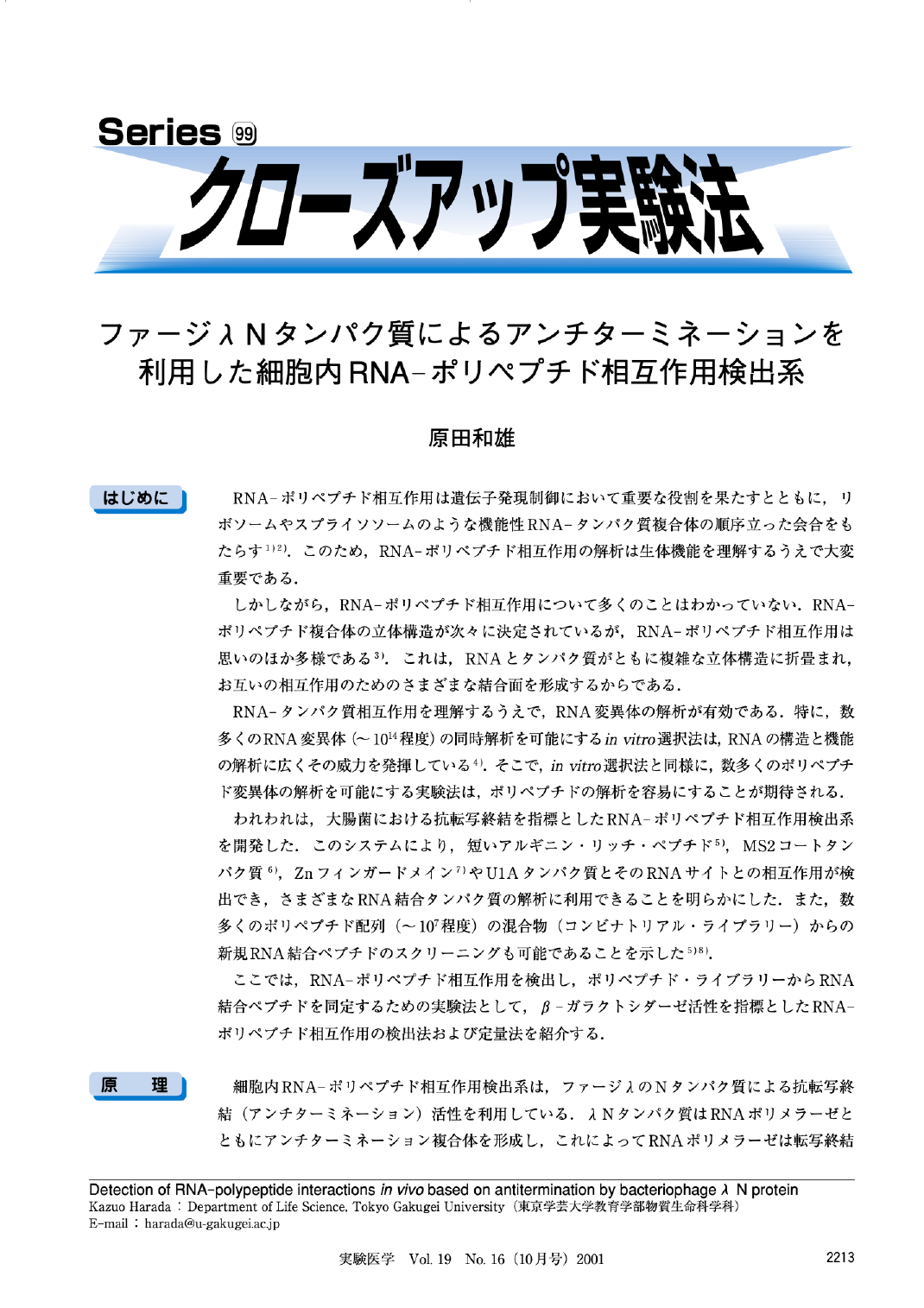 ファージλNタンパク質によるアンチターミネーションを利用した細胞内RNA–ポリペプチド相互作用検出系
