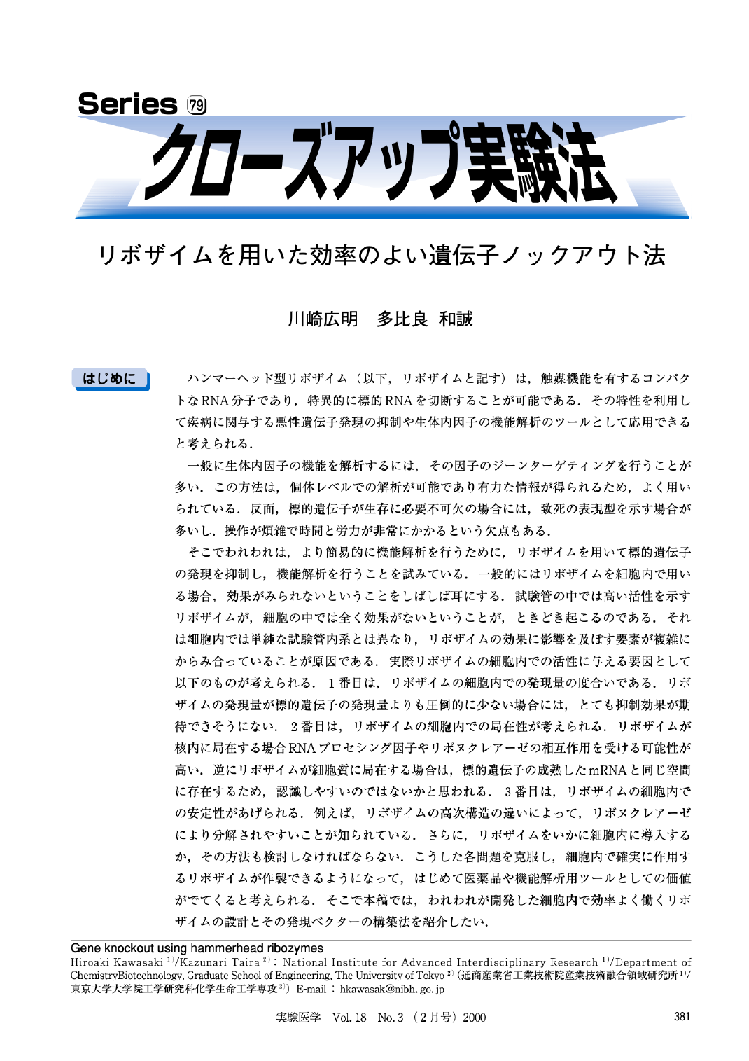 リボザイムを用いた効率のよい遺伝子ノックアウト法