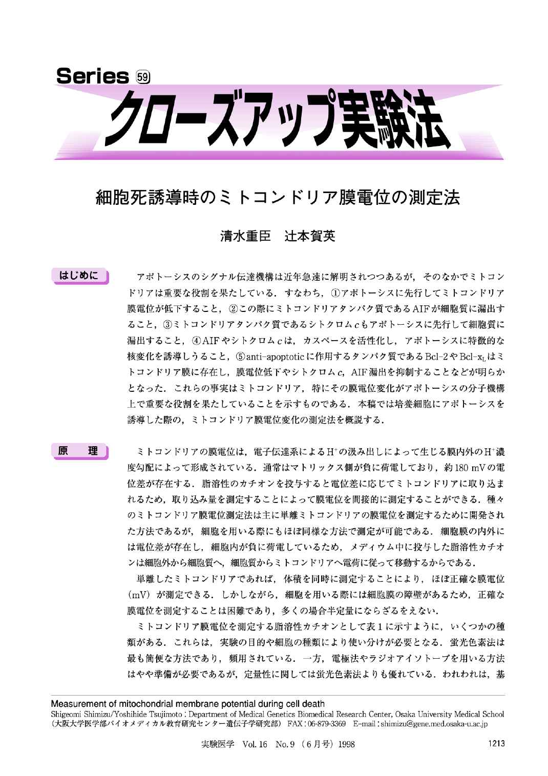 細胞死誘導時のミトコンドリア膜電位の測定法