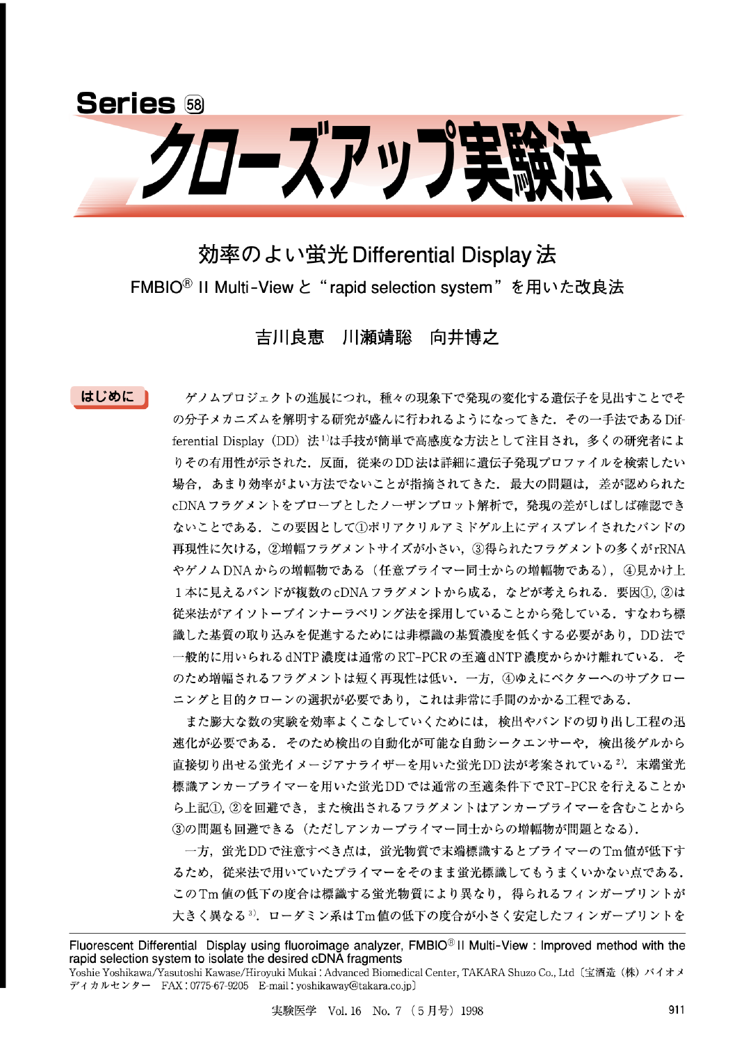 効率のよい蛍光Differential Display法 FMBIORⅡMulti-Viewと“rapid selection system”を用いた改良法
