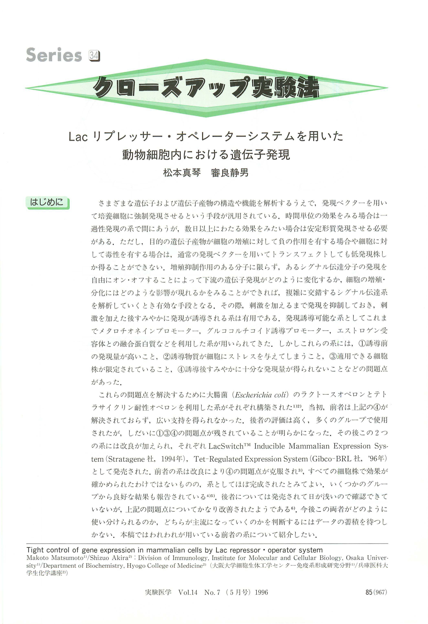 Lacリプレッサー・オペレーターシステムを用いた動物細胞内における遺伝子発現