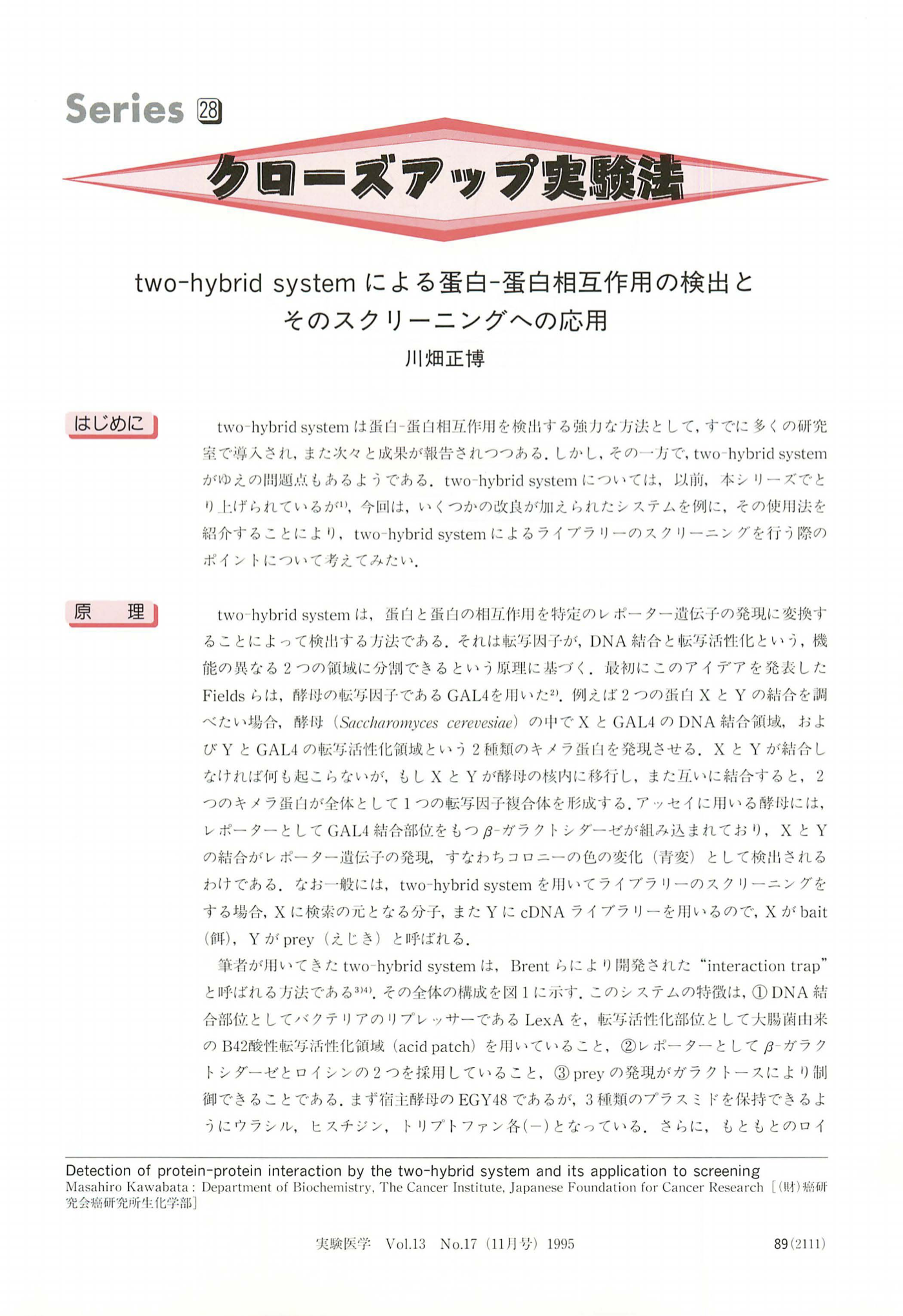 two-hybrid systemによる蛋白−蛋白相互作用の検出とそのスクリーニングへの応用