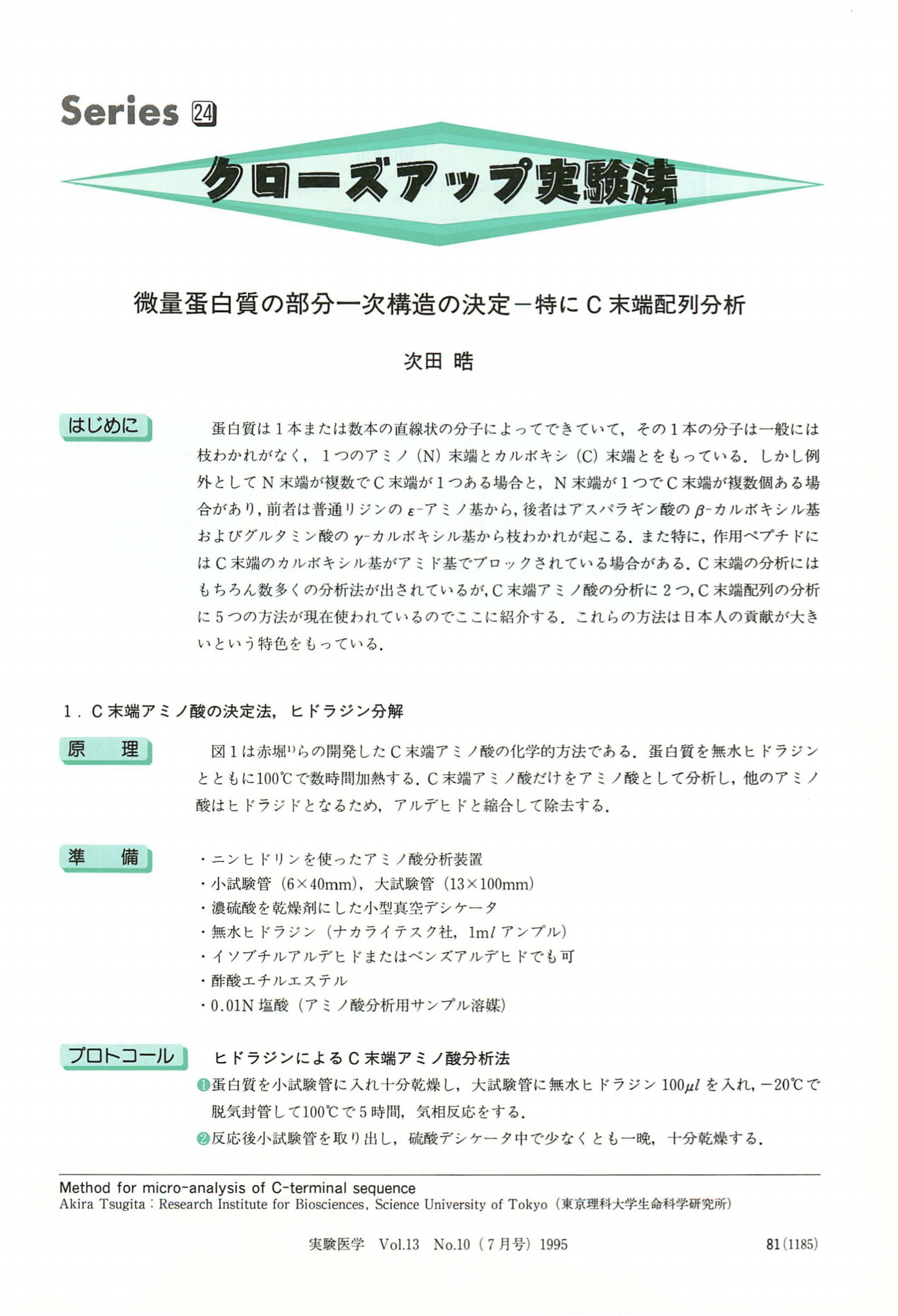 微量蛋白質の部分一次構造の決定−特にC末端配列分析
