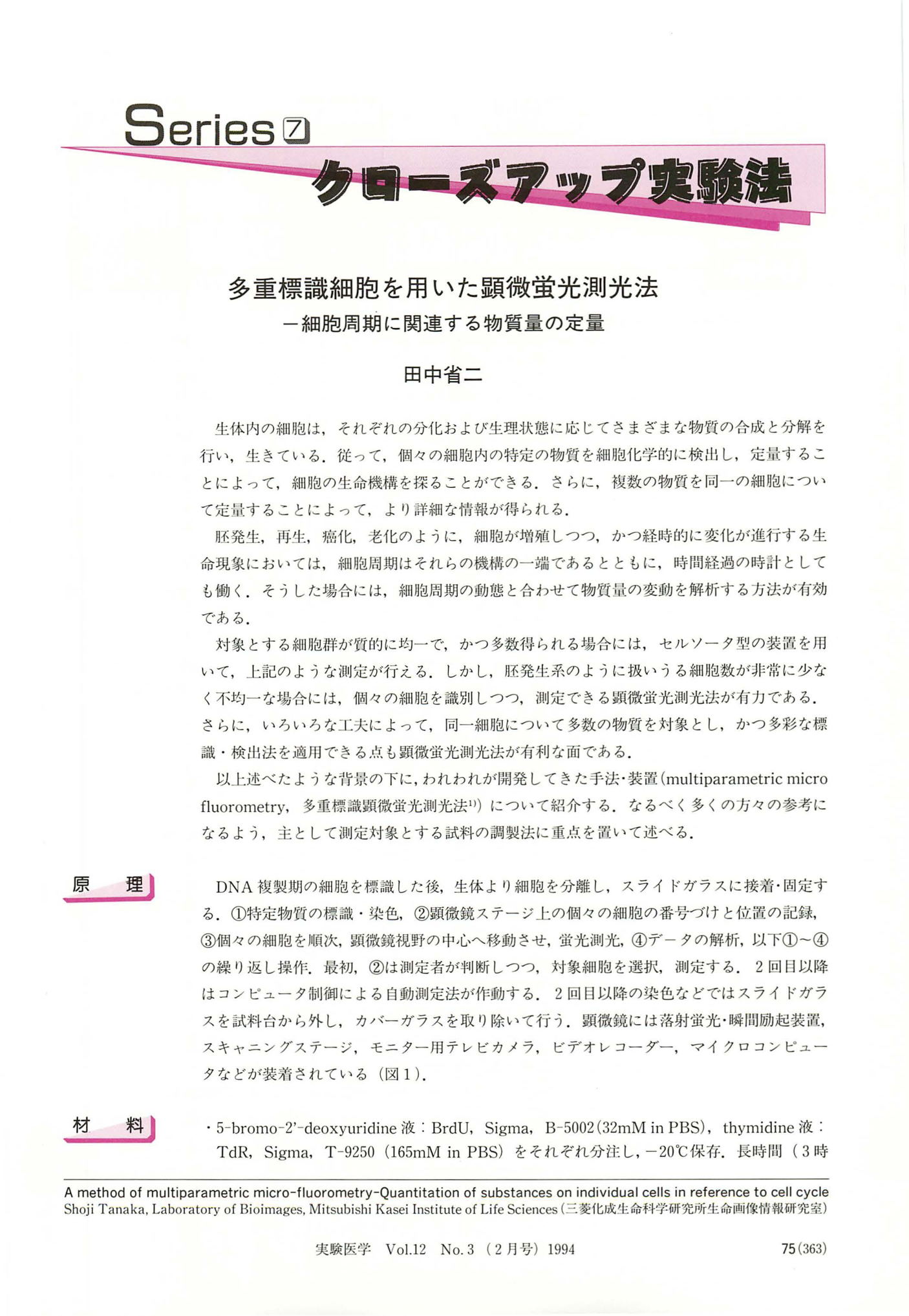 多重標識細胞を用いた顕微蛍光測光法−細胞周期に関連する物質量の定量