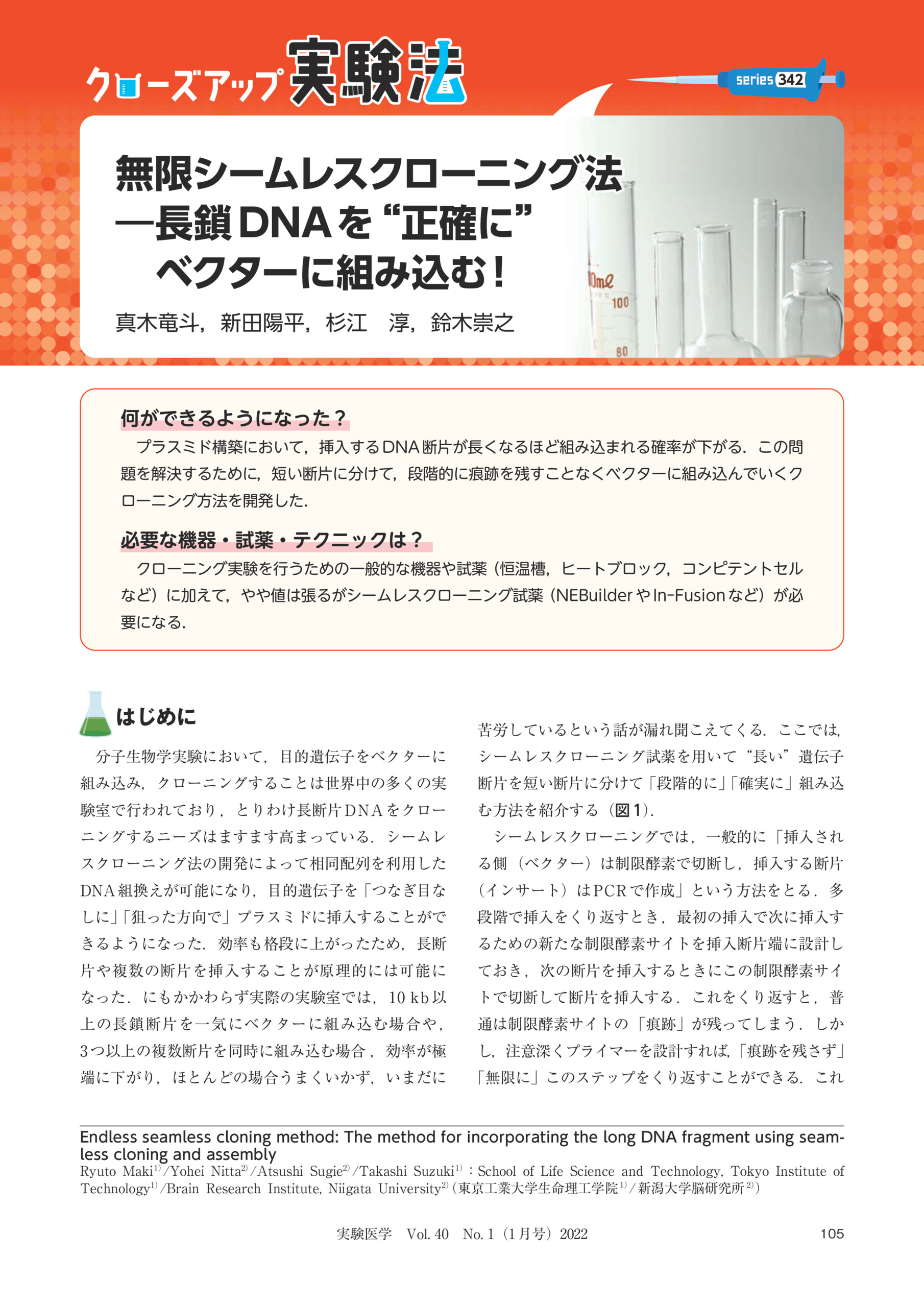無限シームレスクローニング法―長鎖DNAを“正確に”ベクターに組み込む!