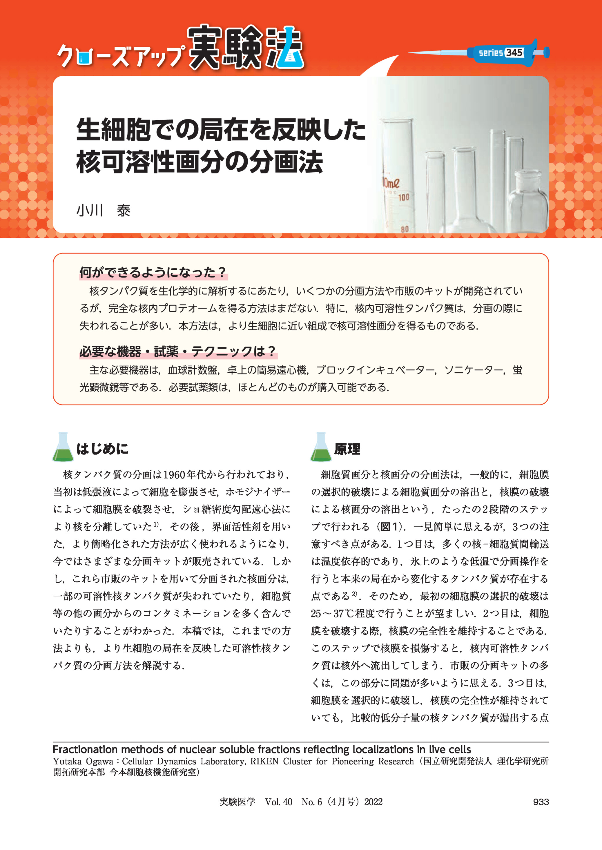 生細胞の局在を反映した核可溶性画分の分画法
