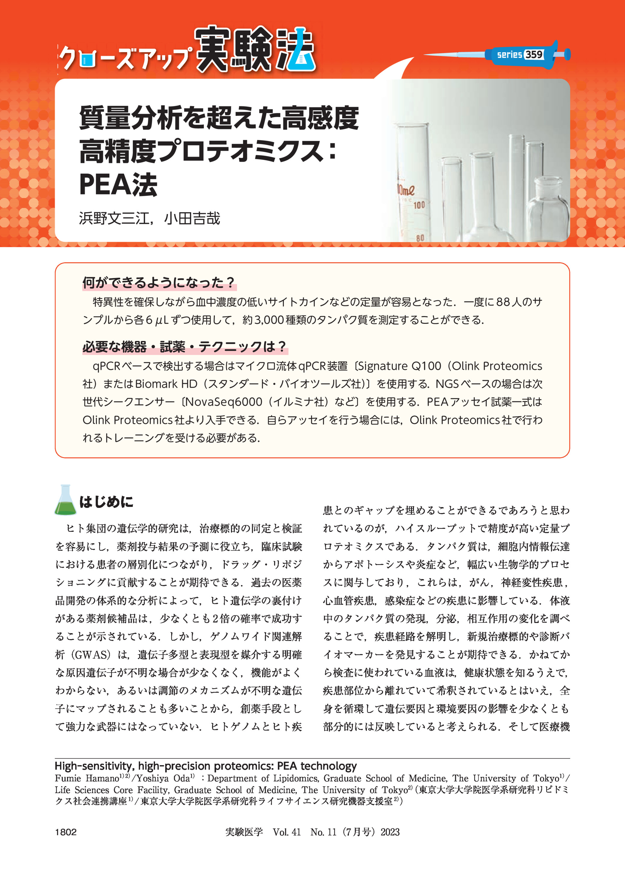 質量分析を超えた高感度高精度プロテオミクス:PEA法