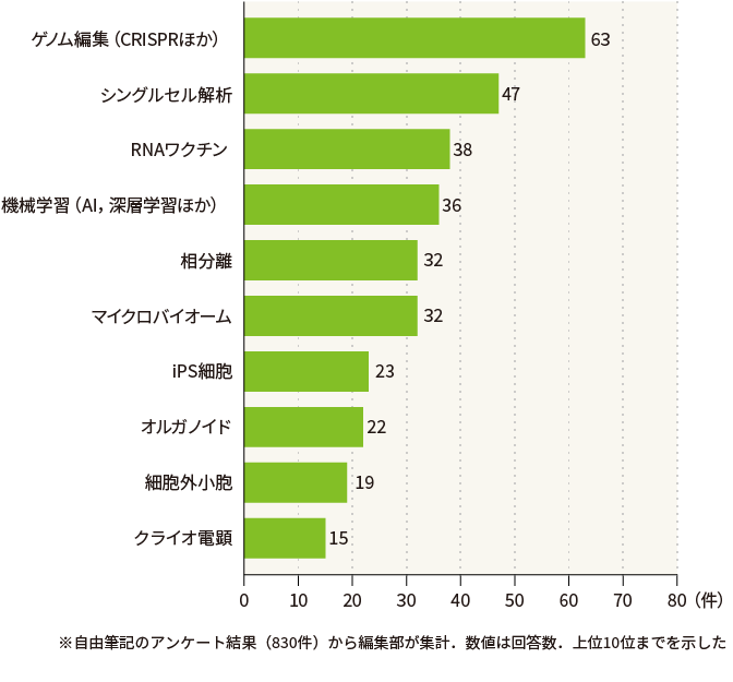 2022年4月20日〜5月31日に,読者の生命科学・医学研究者の皆さまを対象とした実験医学アンケートを実施いたしました(ウェブ回答,有効回答数約800件).回答から浮かび上がった,2022年現代の研究トレンド,近年の医学・生命科学の傾向や注目トピックをご紹介します.